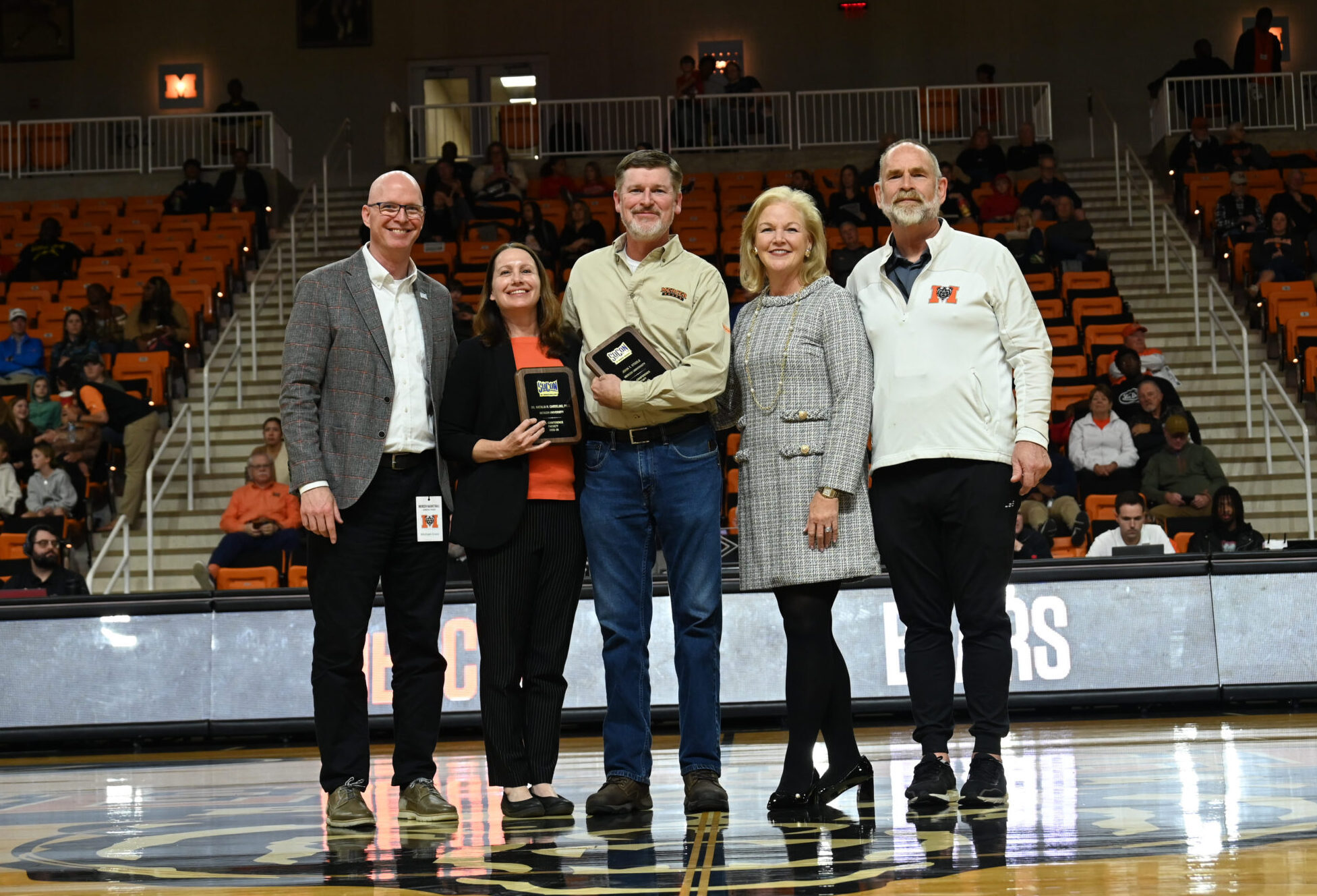 Featured photo: All-Southern Conference Faculty and Staff Awards presentation on Dec. 2 (from left) Southern Conference Commissioner Michael Cross; Dr. Natalia Cardelino; John T. Steele; Executive Vice President, Interim Provost and President-Elect Dr. Penny L. Elkins; and Professor of Chemistry and Mercer University Faculty Athletics Representative Jeffrey Hugdahl. Photo courtesy Kirkwood Connell Wetherington.